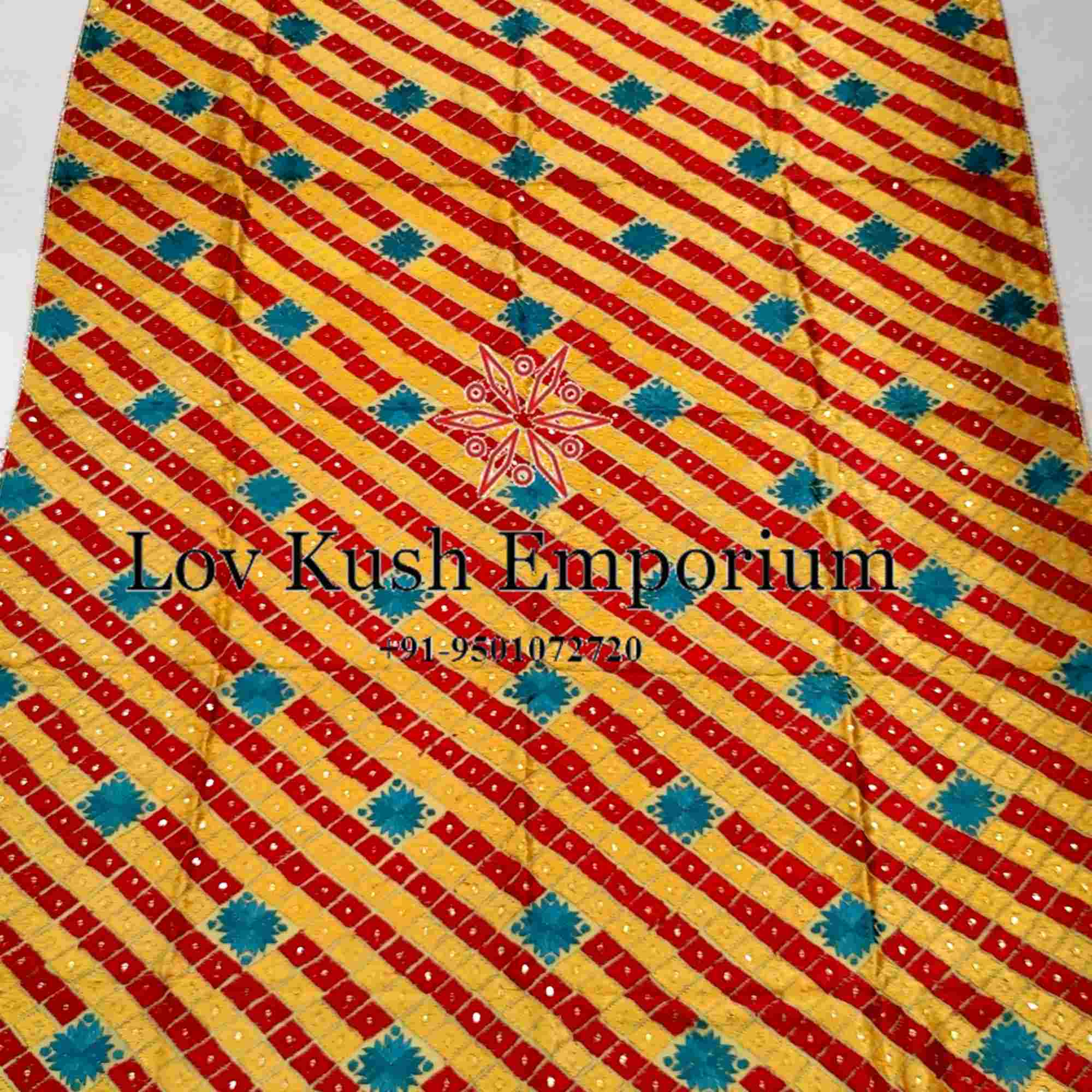 Phulkari, a rural tradition of handmade embroidery, literally meaning ” flower work “, was perpetuated by the women of Punjab (North-west India & Pakistan) during the 19th century and till the beginning of the 20th century.