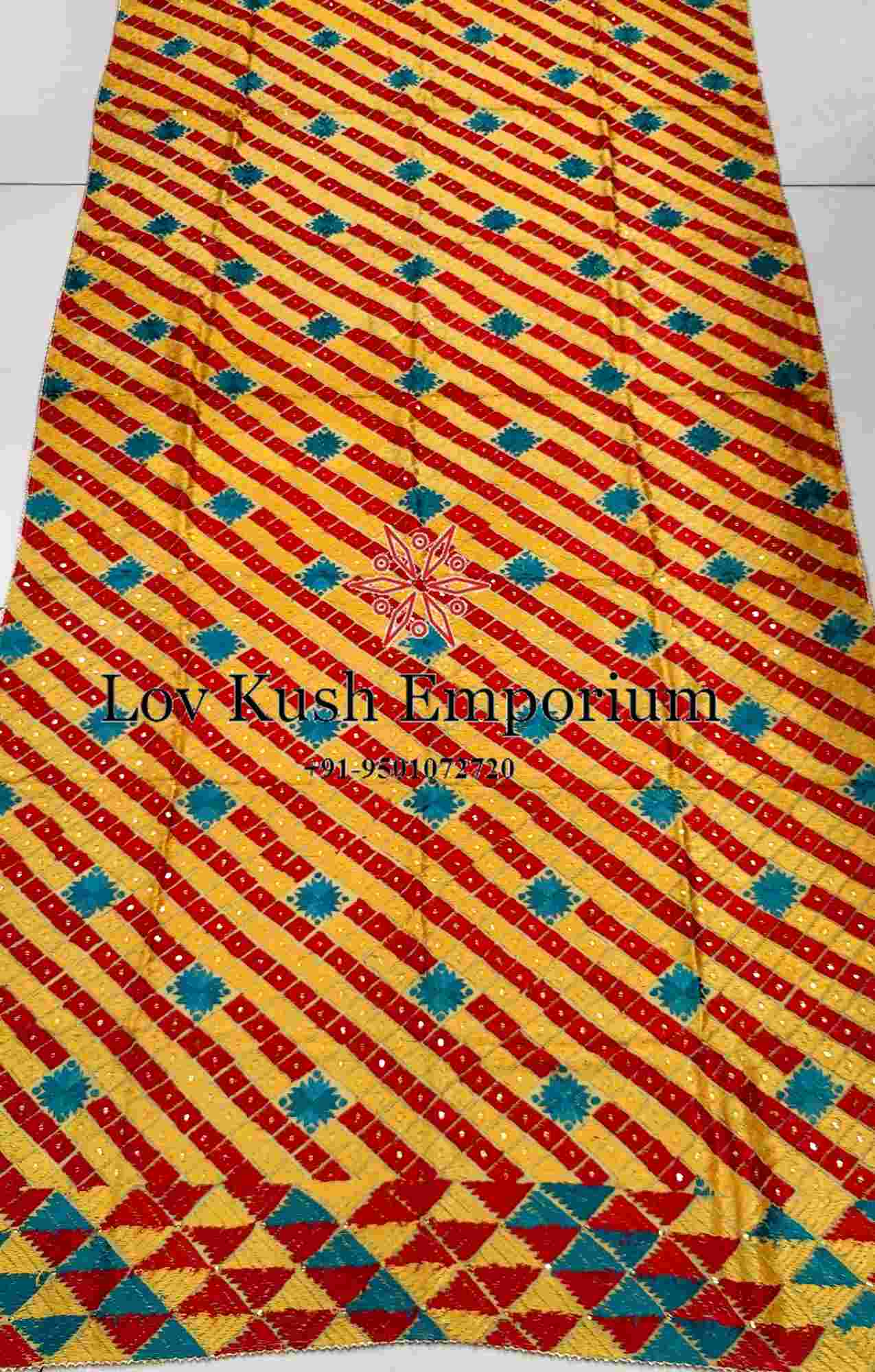 • This is Hand Embroidered Full Jaal , beautiful Authentic Phulkari Crepe Baagh Dupatta.