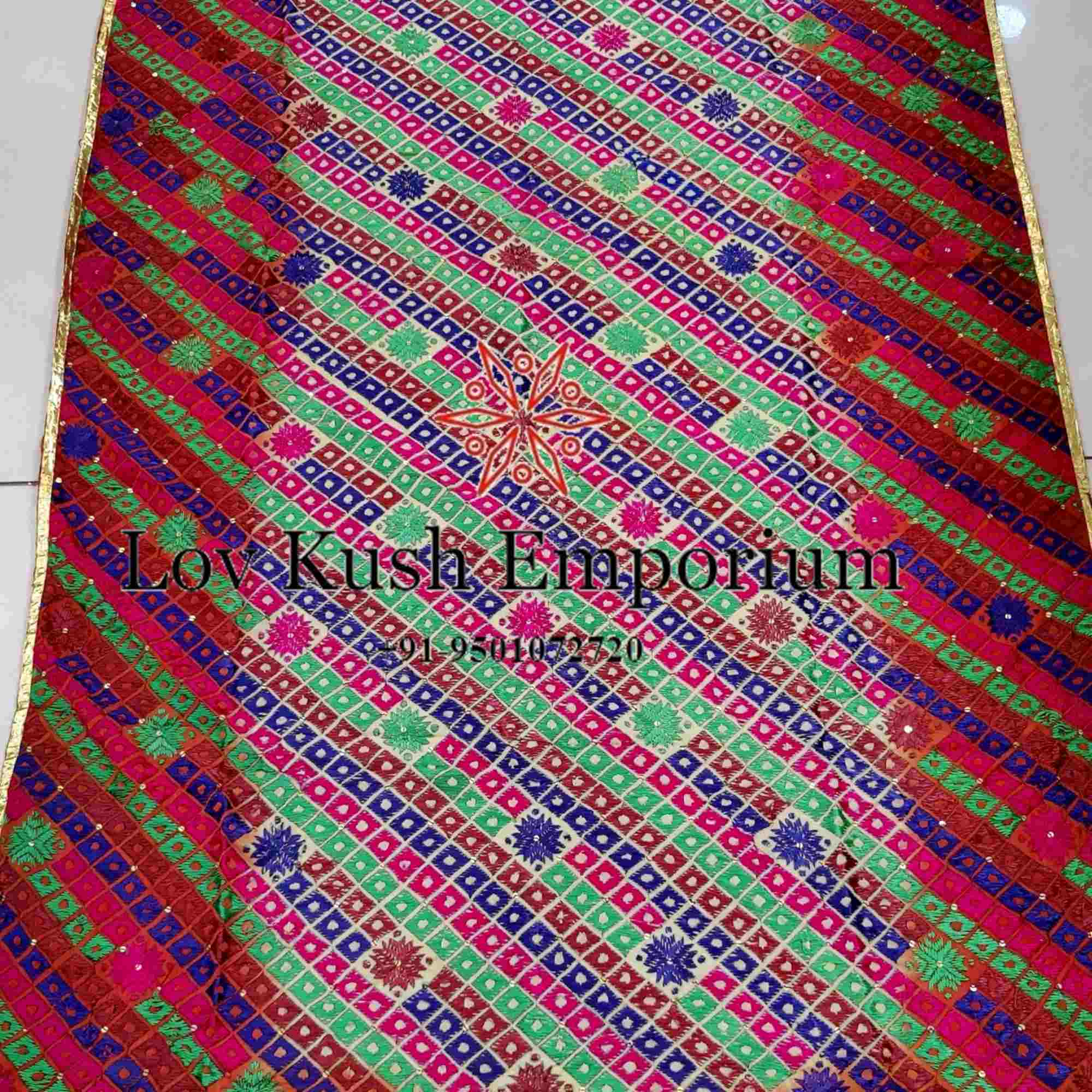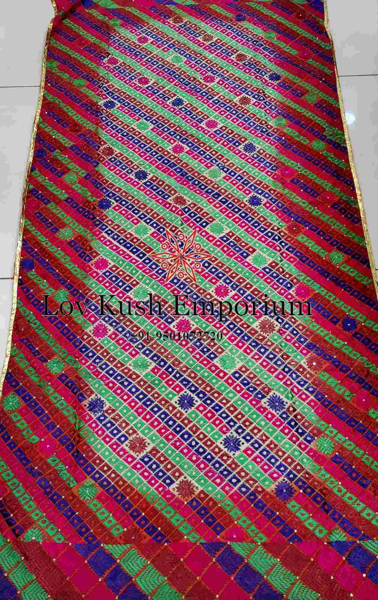• This is Hand Embroidered Full Jaal , beautiful Authentic Phulkari Crepe Baagh Dupatta.