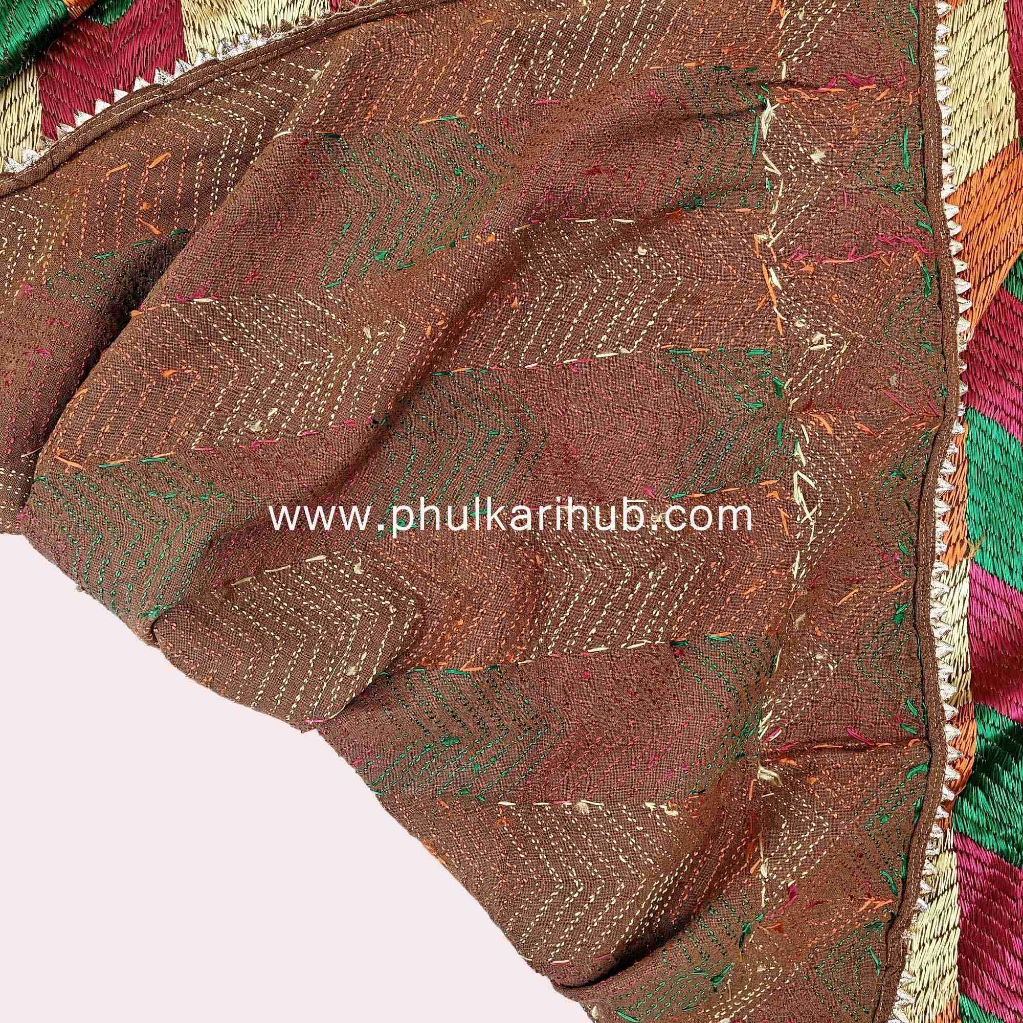 Phulkari Bagh holds a profound place in the cultural and emotional fabric of Punjab. Traditionally crafted by women in the household, each piece tells a story—not just through its vibrant colors and intricate patterns, but also through the love and emotion sewn into every stitch. It is a symbol of a mother’s affection, often created as part of a daughter’s wedding trousseau, and gifted on special occasions such as weddings, childbirths, and religious festivals.
