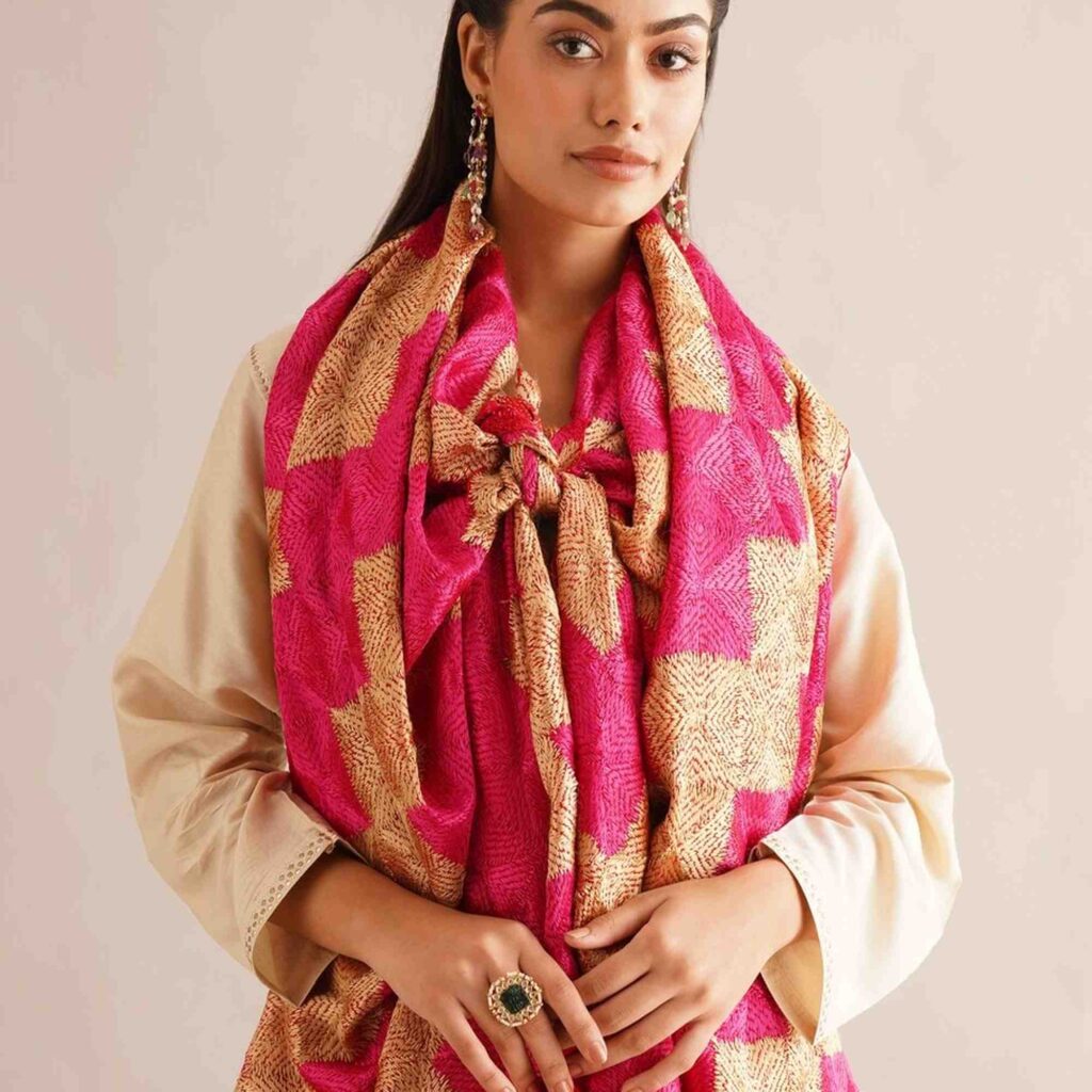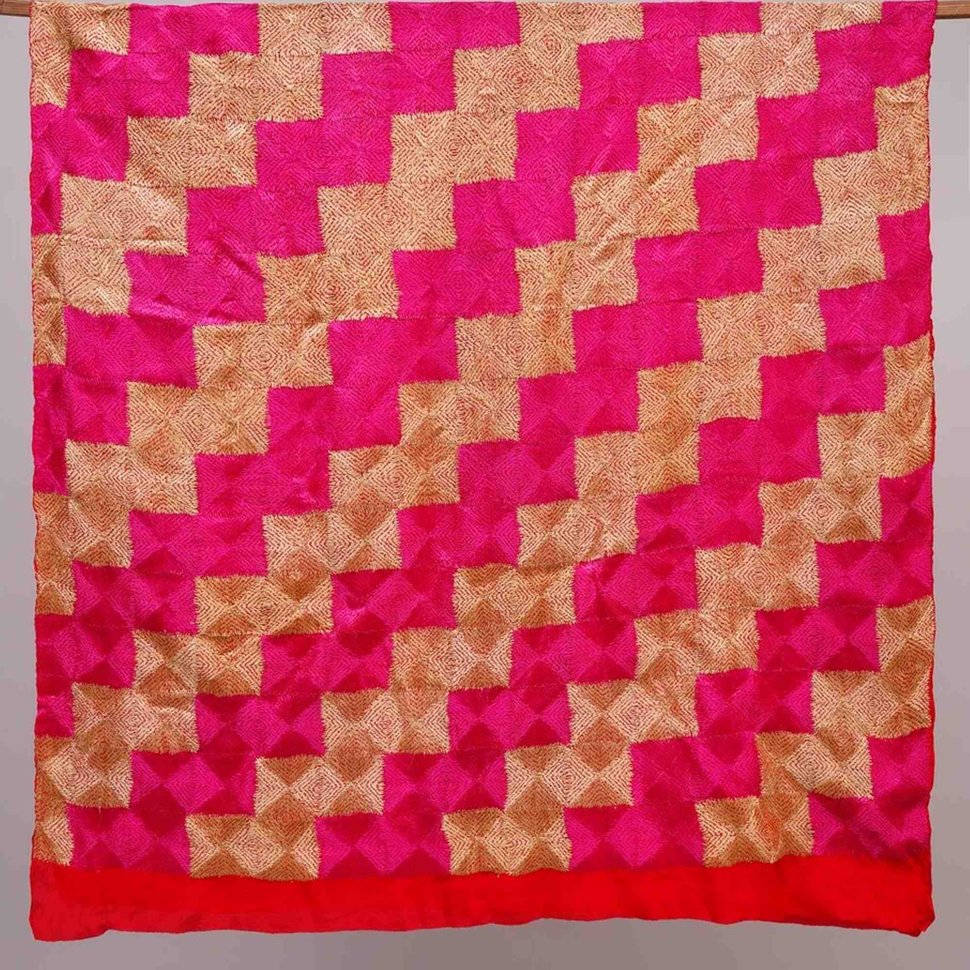 Phulkari, a rural tradition of handmade embroidery, literally meaning ” flower work “, was perpetuated by the women of Punjab (North-west India & Pakistan) during the 19th century and till the beginning of the 20th century.