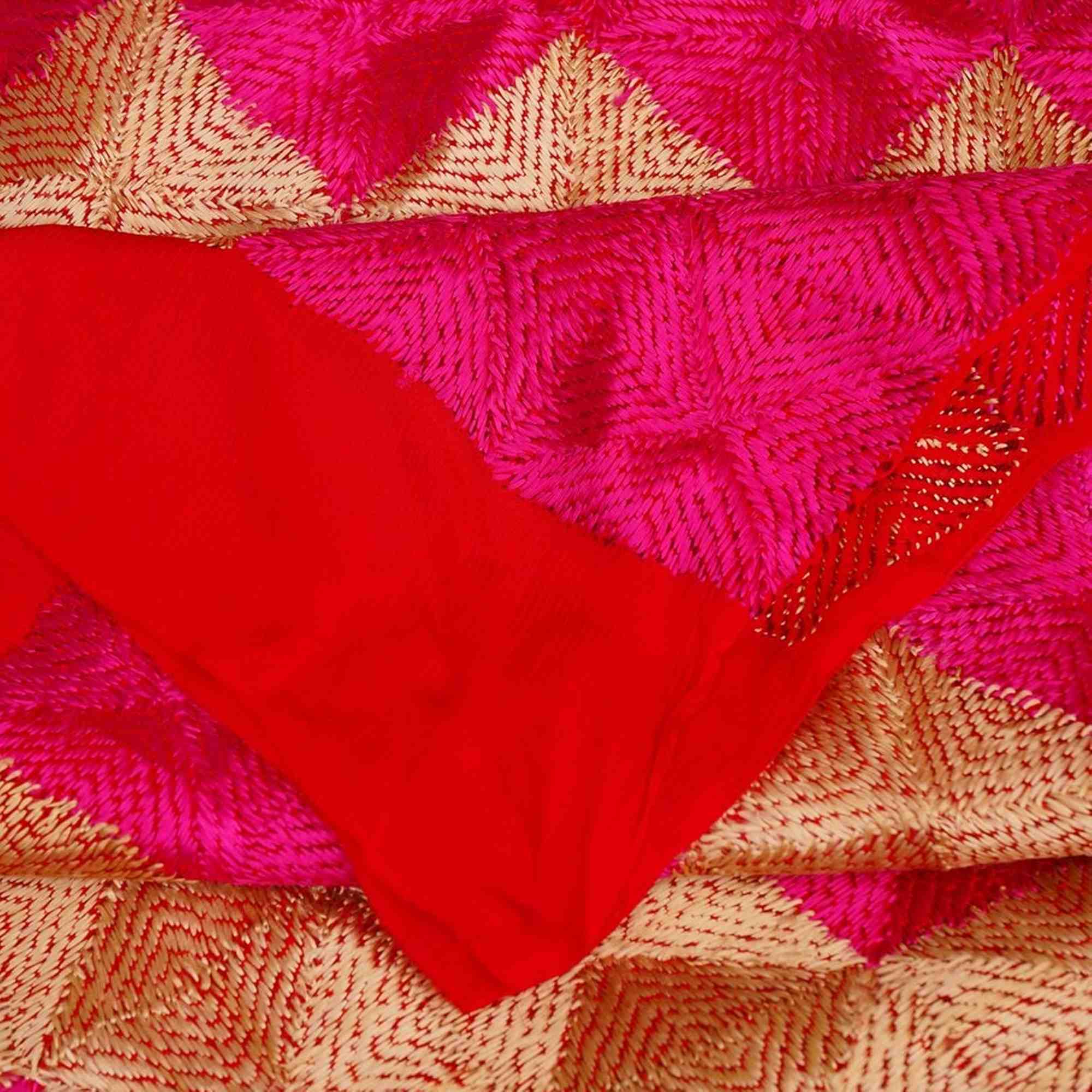 Punjab is known for its Phulkari. The embroidery is done with floss silk thread on coarse hand woven cotton fabric (khaddar). Phulkari and Baaghs were worn by women all over Punjab during marriage festivals and other joyous occasions. These were embroidered by the women for their own use and use of other family members and were not for sale in the market. Thus, it was purely a domestic art which not only satisfied their inner urge for creation but brought color into day-to-day life. In a way, it was true folk art. Custom had grown to give Phulkaris and Baaghs to brides at the time of marriages.