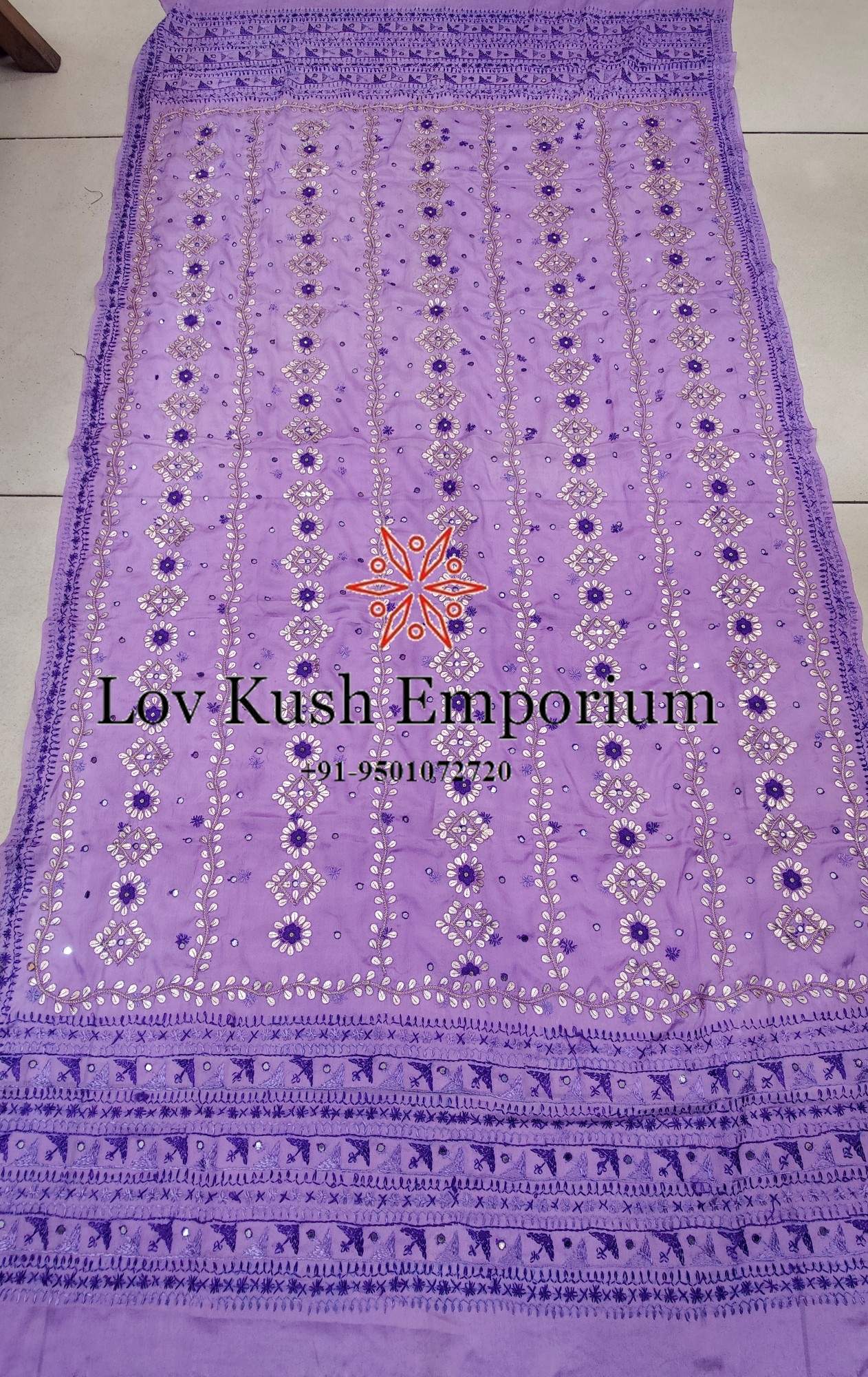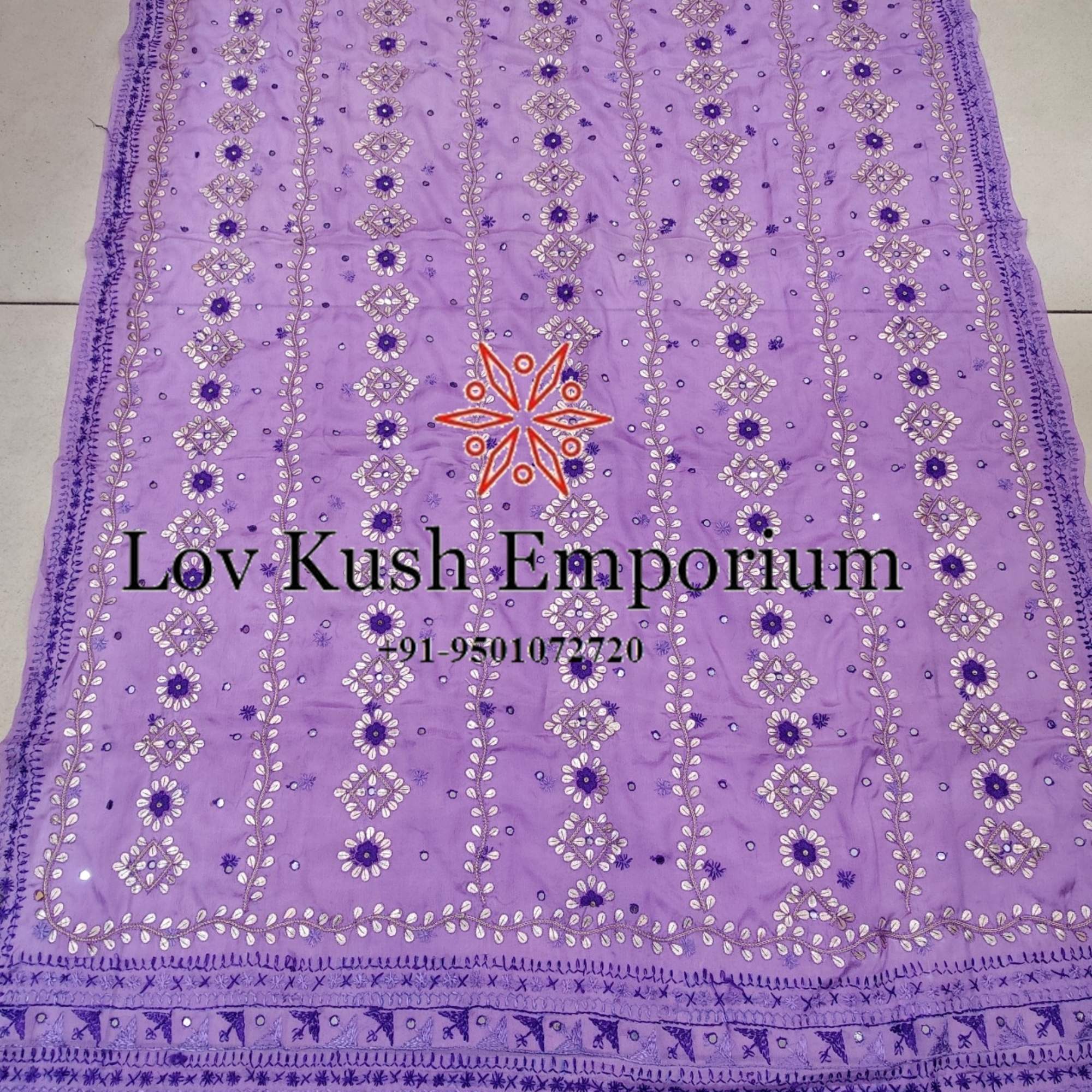 • This is Navbharat’s pure chinnon-chiffon, beautiful Authentic Hand Embroidered Phulkari Dupatta with Gotta-patti and mirror work.