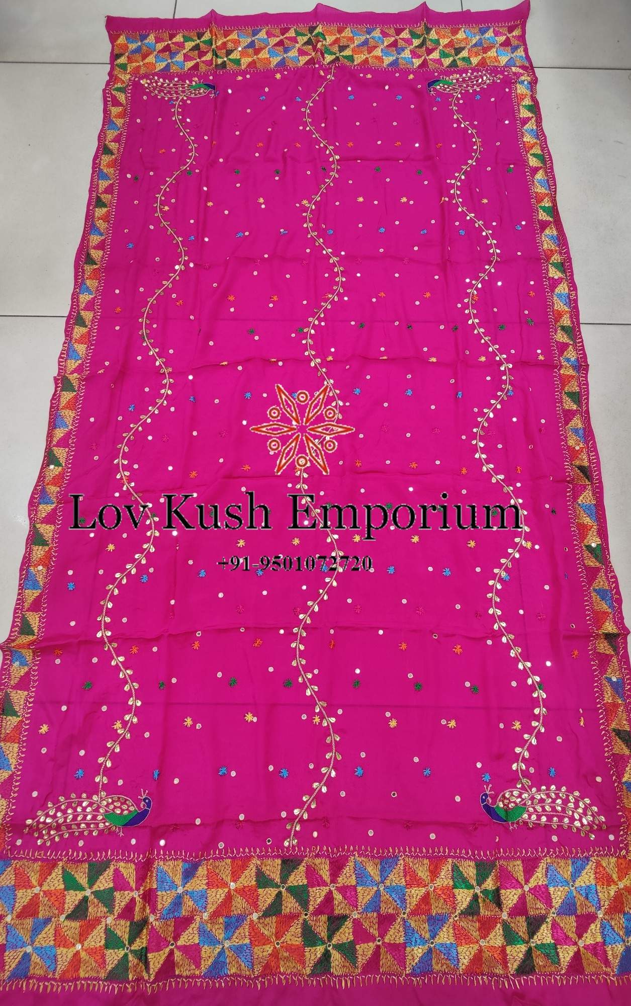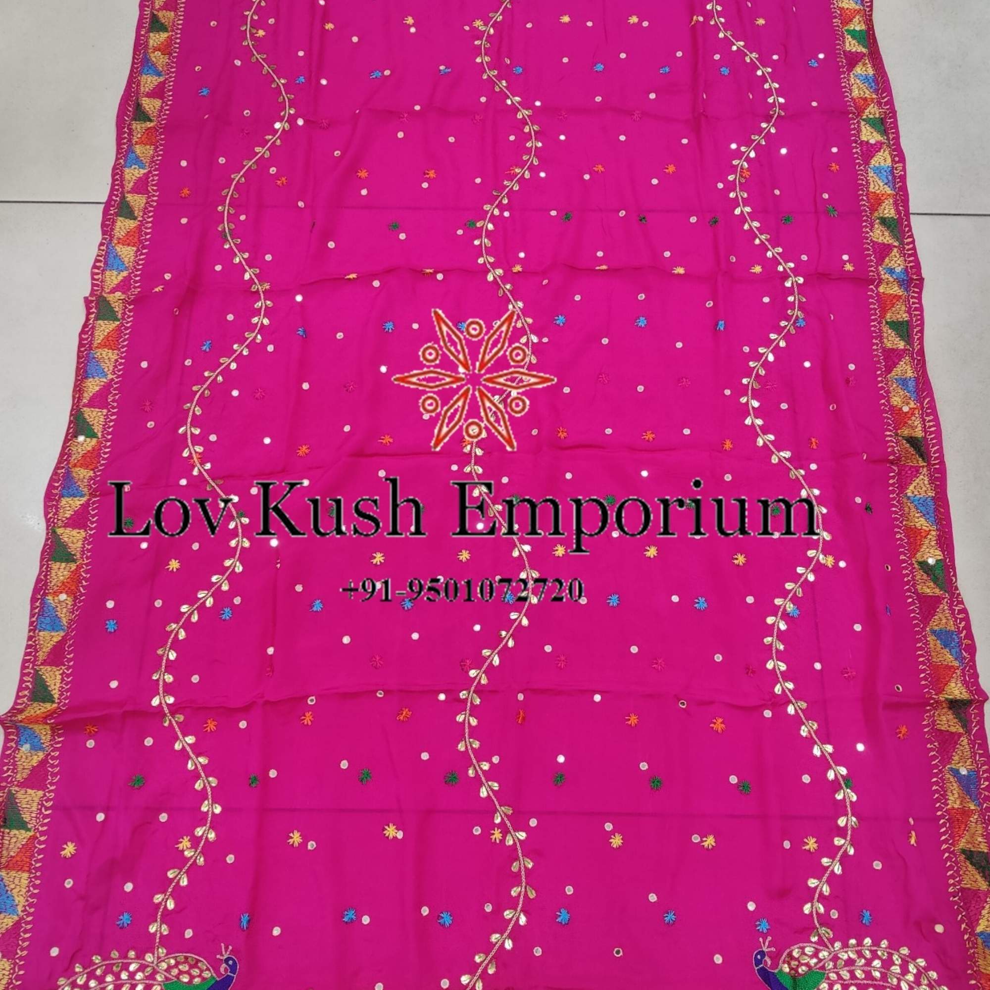• This is Navbharat’s pure chinnon-chiffon, beautiful Authentic Hand Embroidered Phulkari Dupatta with Gotta-patti and mirror work.