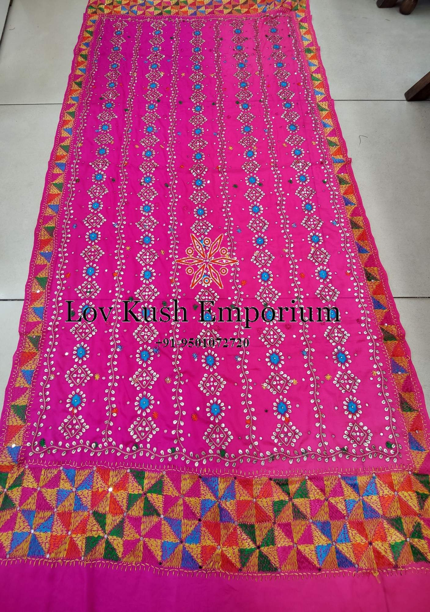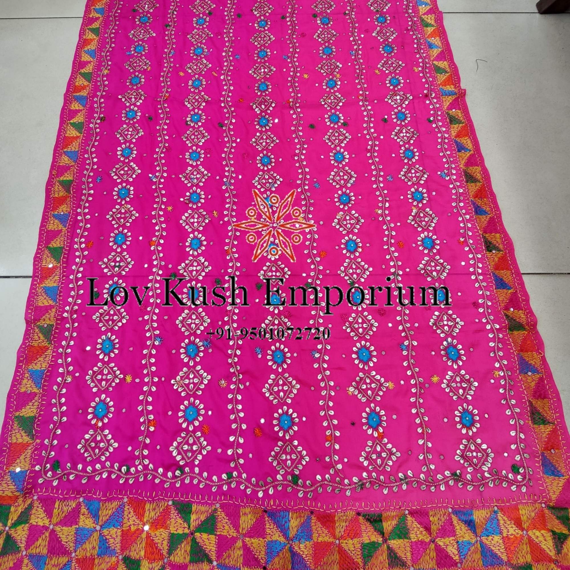 • This is Navbharat’s pure chinnon-chiffon, beautiful Authentic Hand Embroidered Phulkari Dupatta with Gotta-patti and mirror work.