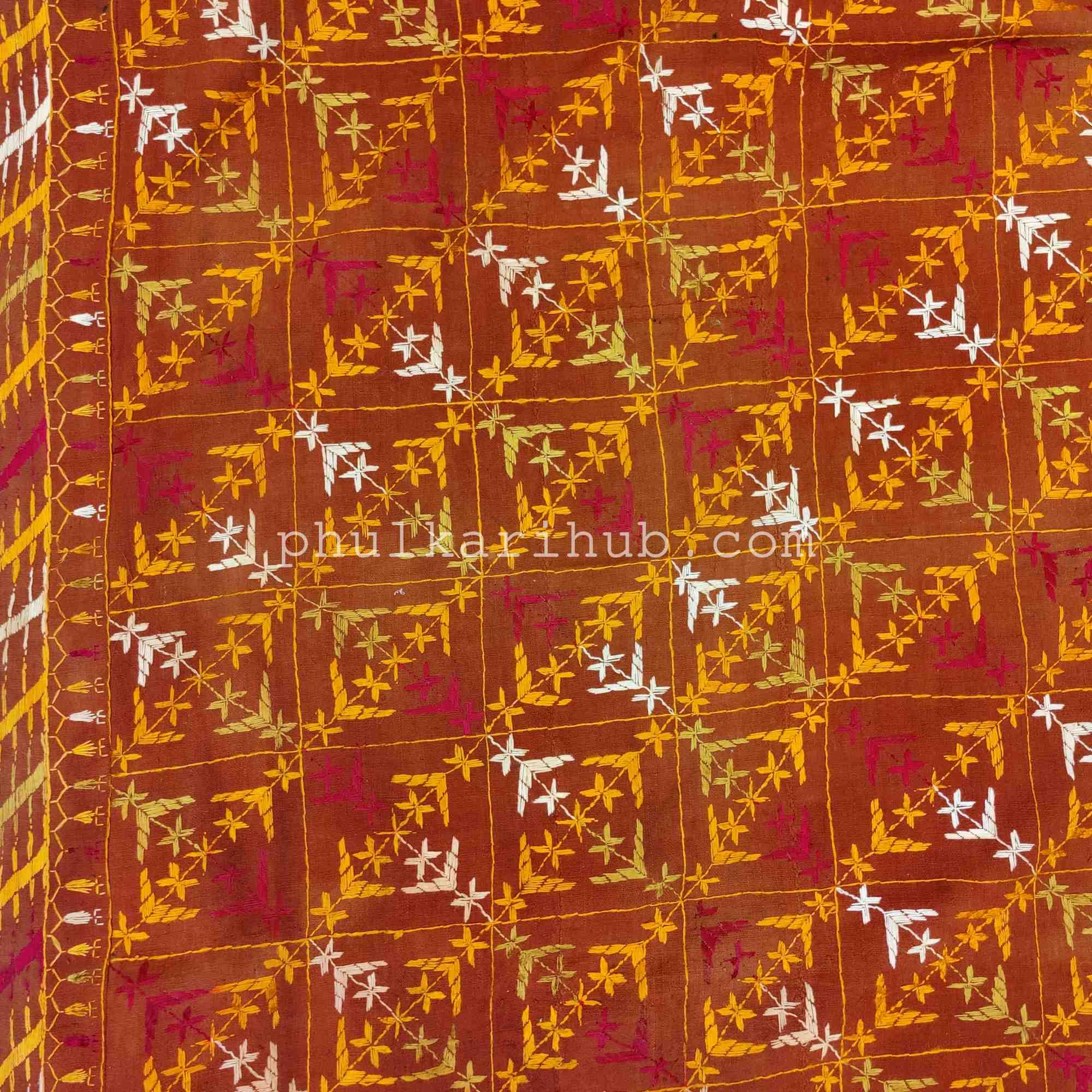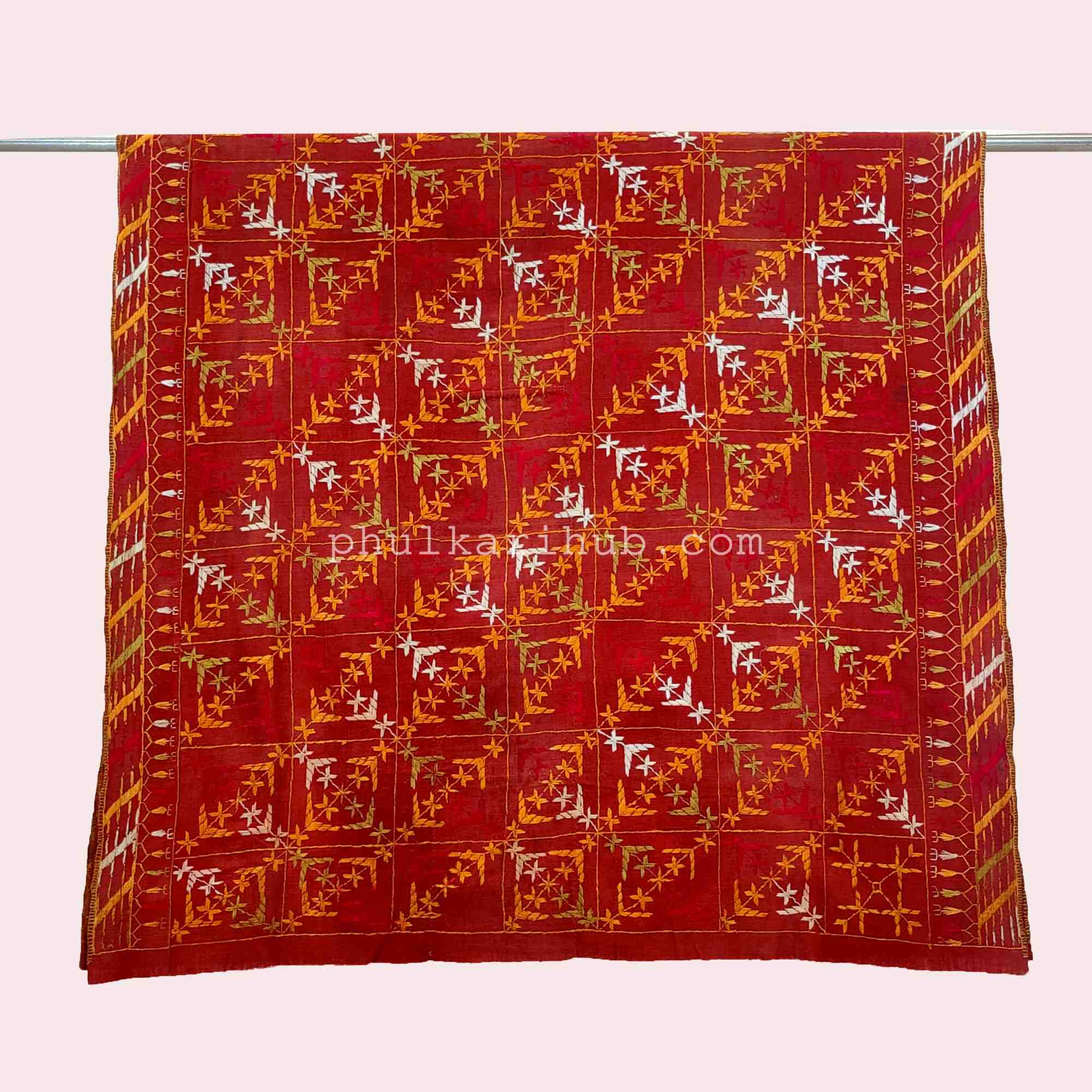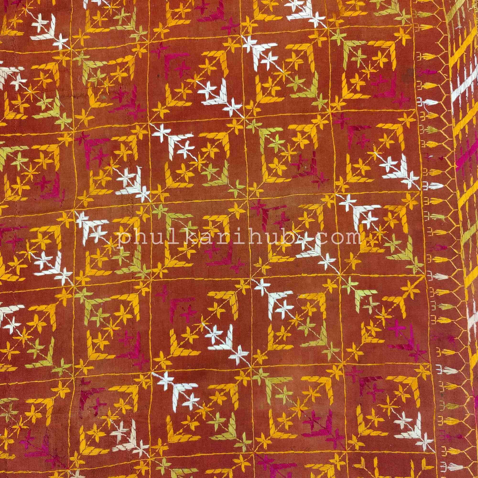 Vintage Phulkari Hand Embroidered Khaddar Dupatta (from Old Punjab)