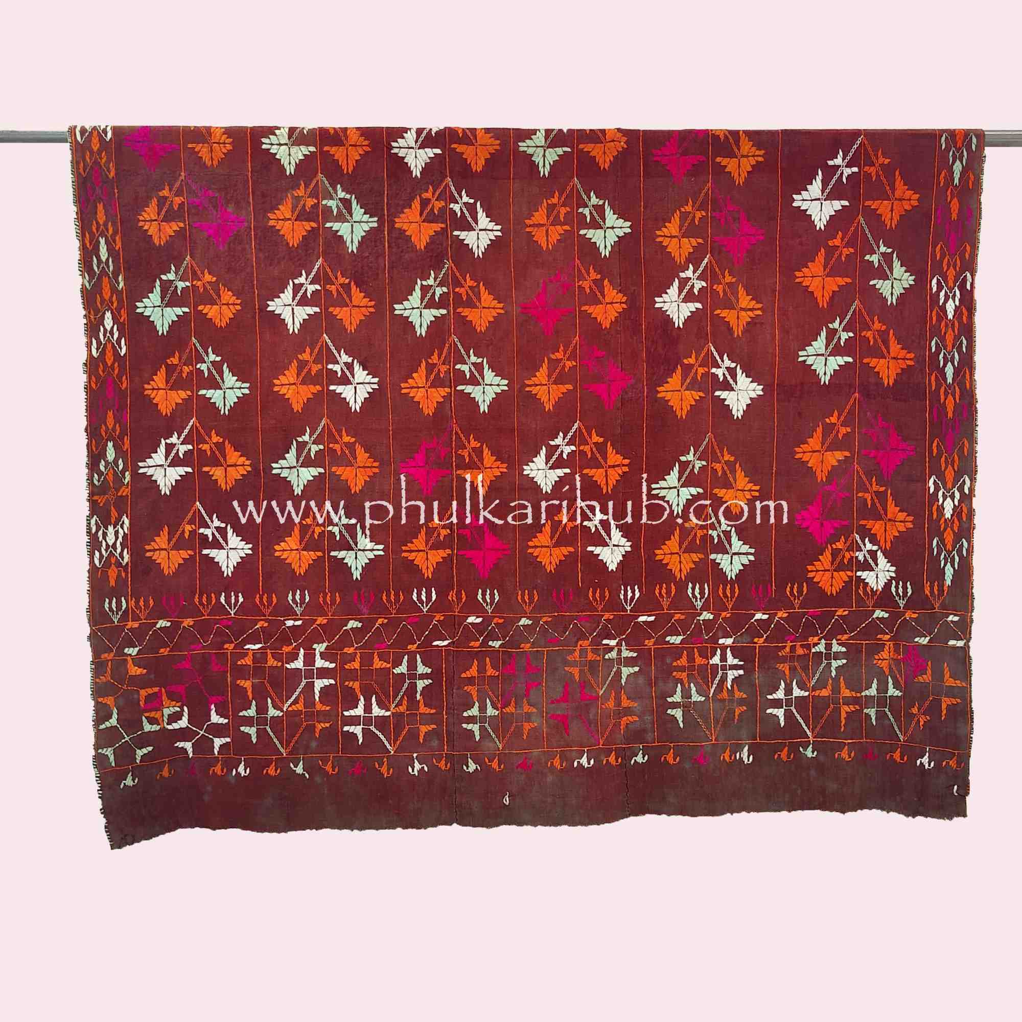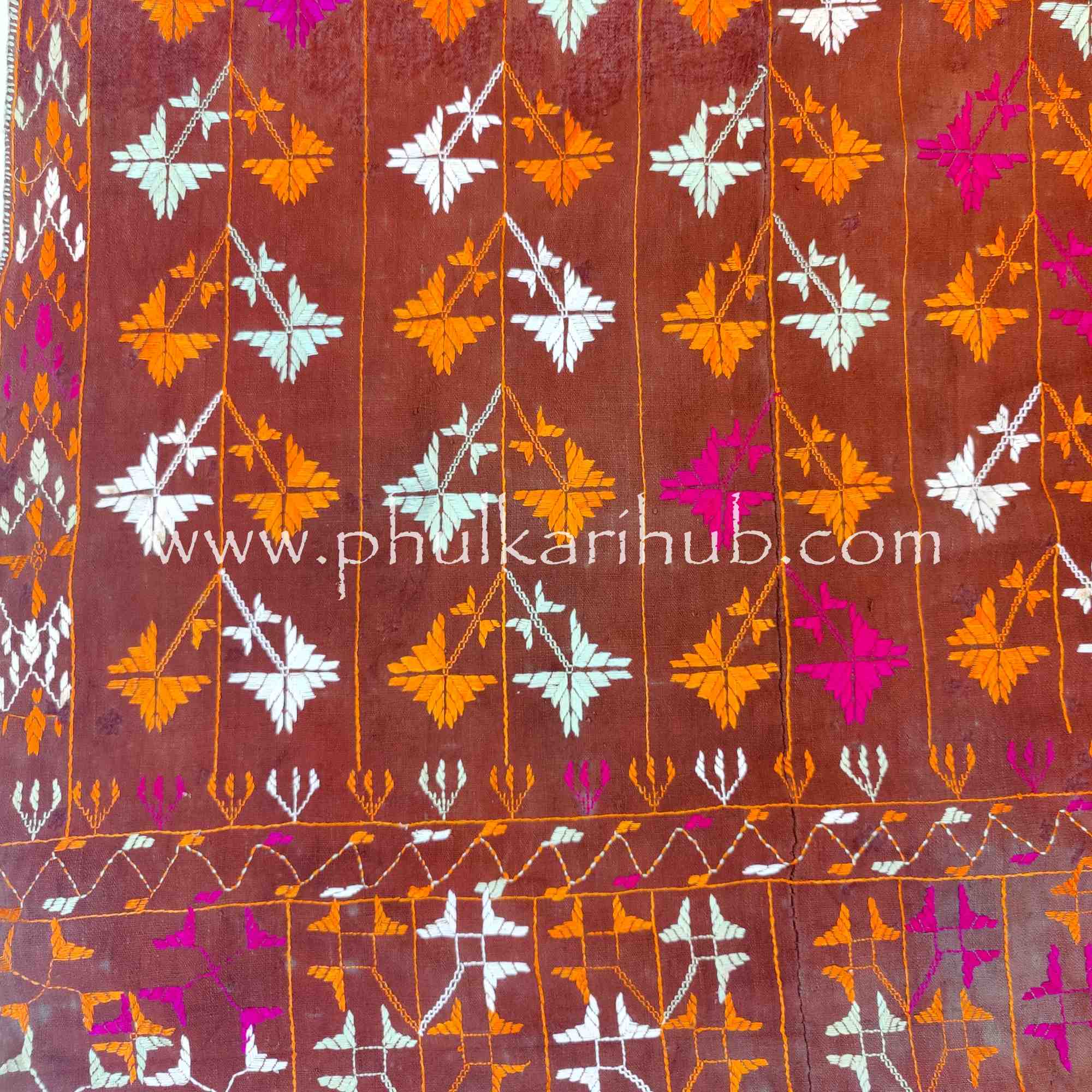 Vintage Phulkari Hand Embroidered Khaddar Dupatta (from Old Punjab)