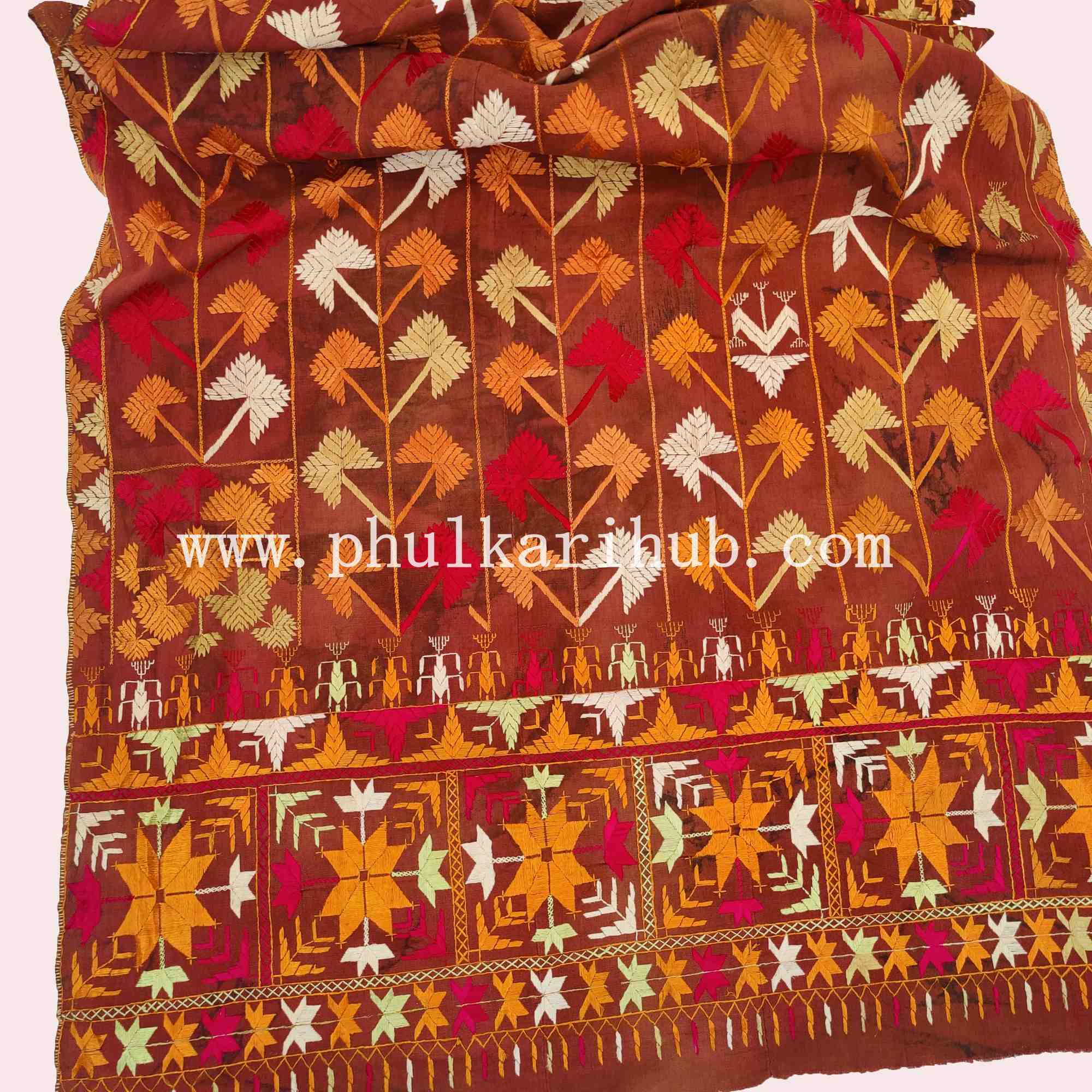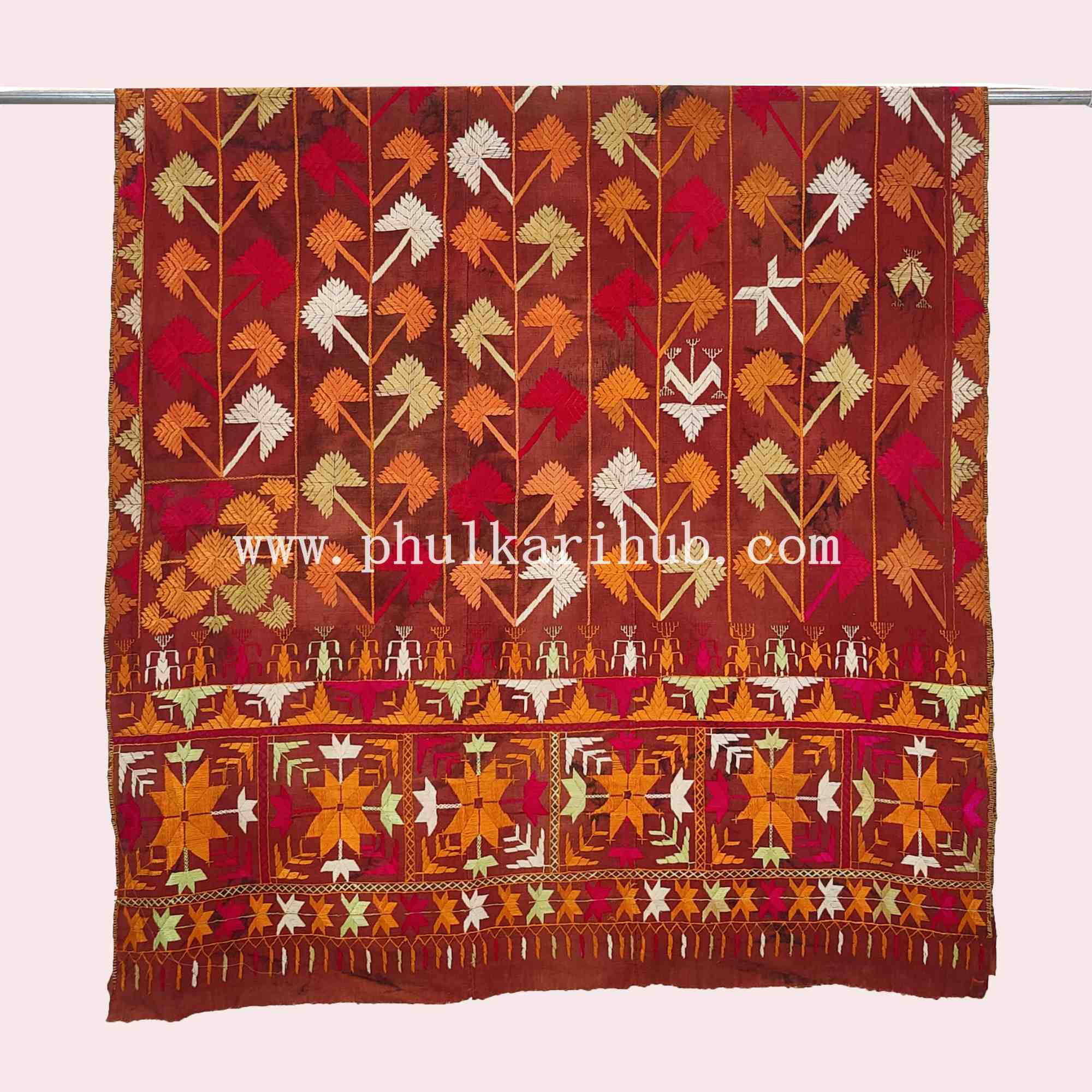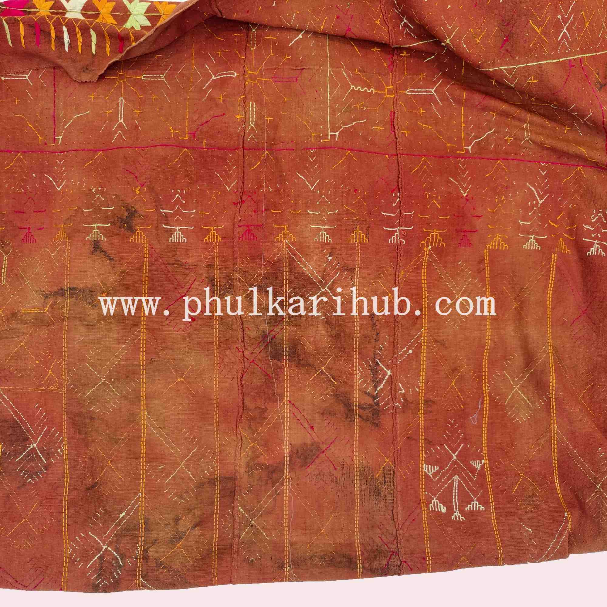 Vintage Phulkari Hand Embroidered Khaddar Dupatta (from Old Punjab)